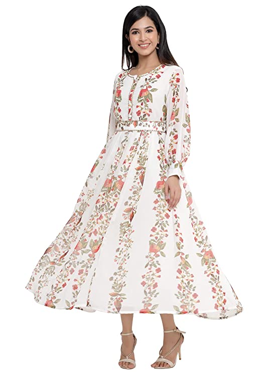 STYLE & MATERIAL : Present an Elegant collection of Women’s Floral Print Chiffon Straight Long Sleeves Fit and Flare Dress For You. This Dress is extremely stylish With Vibrant Colors, soft and comfortable.