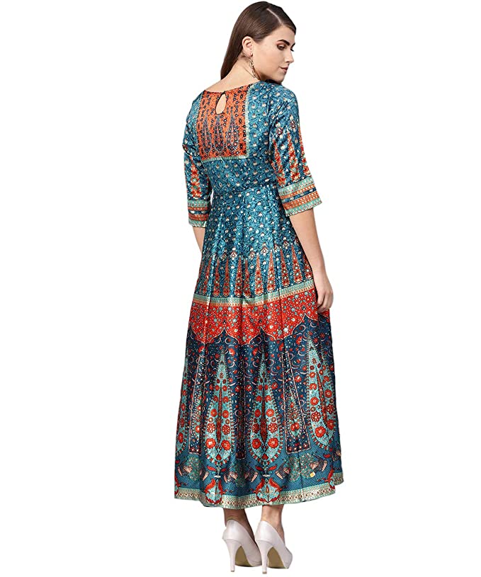 Juniper Women’s Dull Satin Printed Anarkali Dress