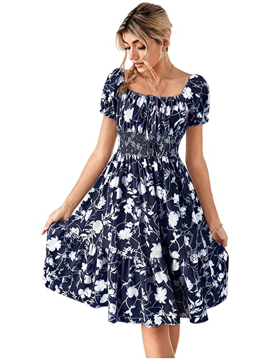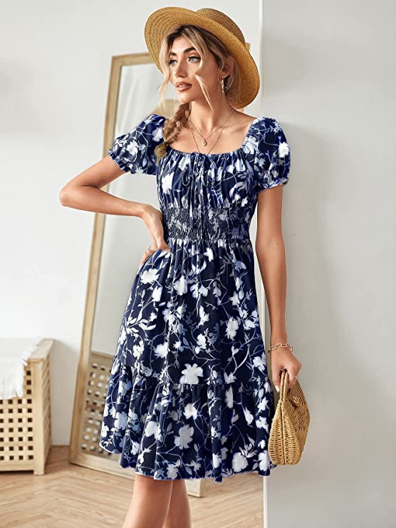 Product Details Material CompositionPolyester StyleDress PatternPrint Neck StyleSquare Neck Country of OriginIndia About this Item Fit Type: Regular , Fabric : Polyester Sleeve Type : Short Sleeve , Hem Shaped:Flounce Wash Care : first wash is dry clean after that use machine wash or hand wash 95% Polyester 5% spendex Ocassion: Traditional wear,Casual Wear, Office Wear, Formal wear, Evening wear, Work Wear, Party Wear