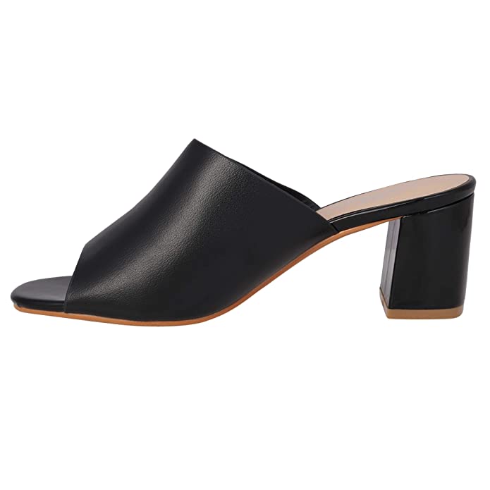 pelle albero Womens Black Block Heel Slipper
