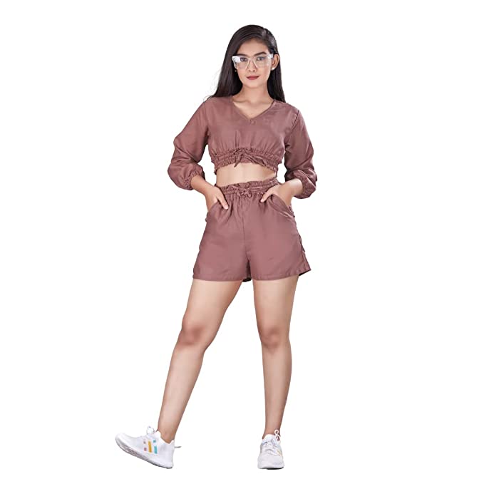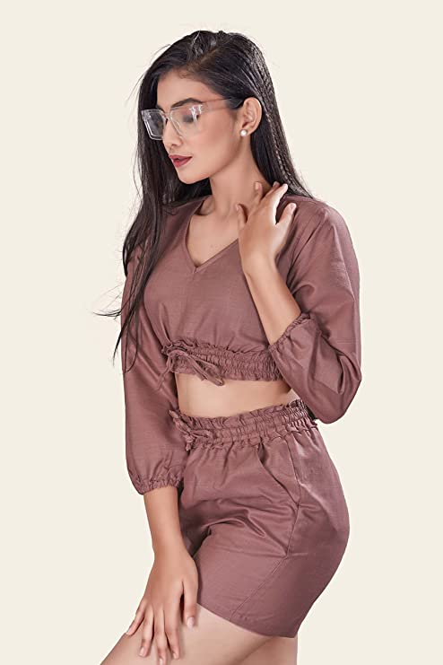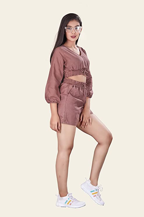 Product Details StyleTwo Piece Dress Cotton Long Sleeves V-Neck Top and Shorts – Travel Edition Closure TypeDrawstring MaterialCotton Care InstructionsMachine Wash Country of OriginIndia About this Item Fabric: Cotton Linen , Soft and Comfortable to wear Model Has Wear S Size 2 Side Pockets Great pair with shoes, heels and flats for a stylish looks Wash Care: Cold Machine wash with similar colors, Do not Bleach This top and shorts set is incredibly Cosy, making it perfect for both travelling and lounging about.