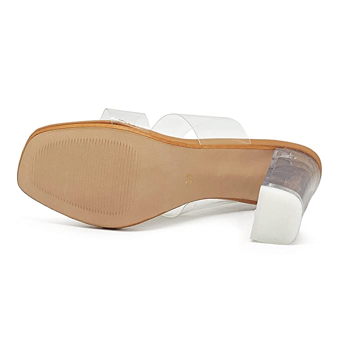 WFS Women 4 Inch Transparent (Clear) Block Heel Sandals Beige